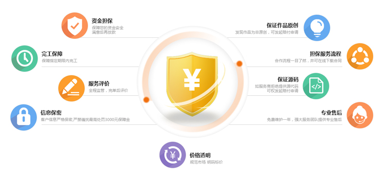 9大保障是程师兄针对营销服务交易市场推出的一个担保交易平台,有效的解决在营销服务交易中的信用问题。