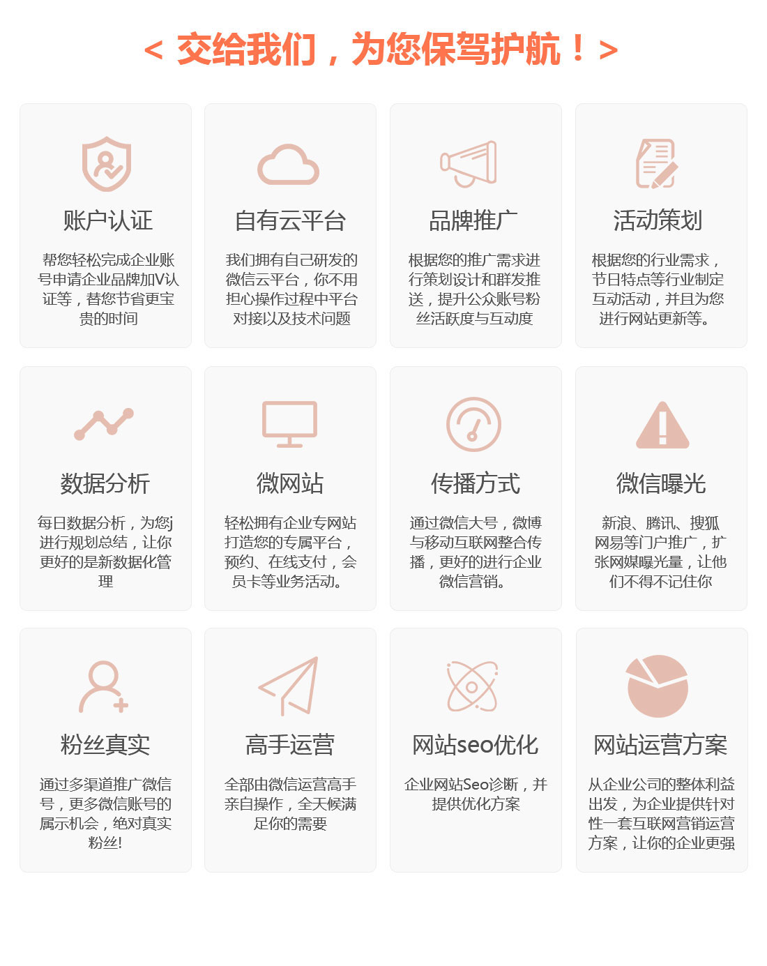 公众微信代运营 微商城 微信朋友圈广告 微信广点通 微信活动